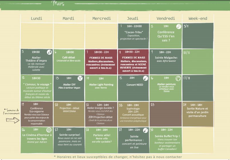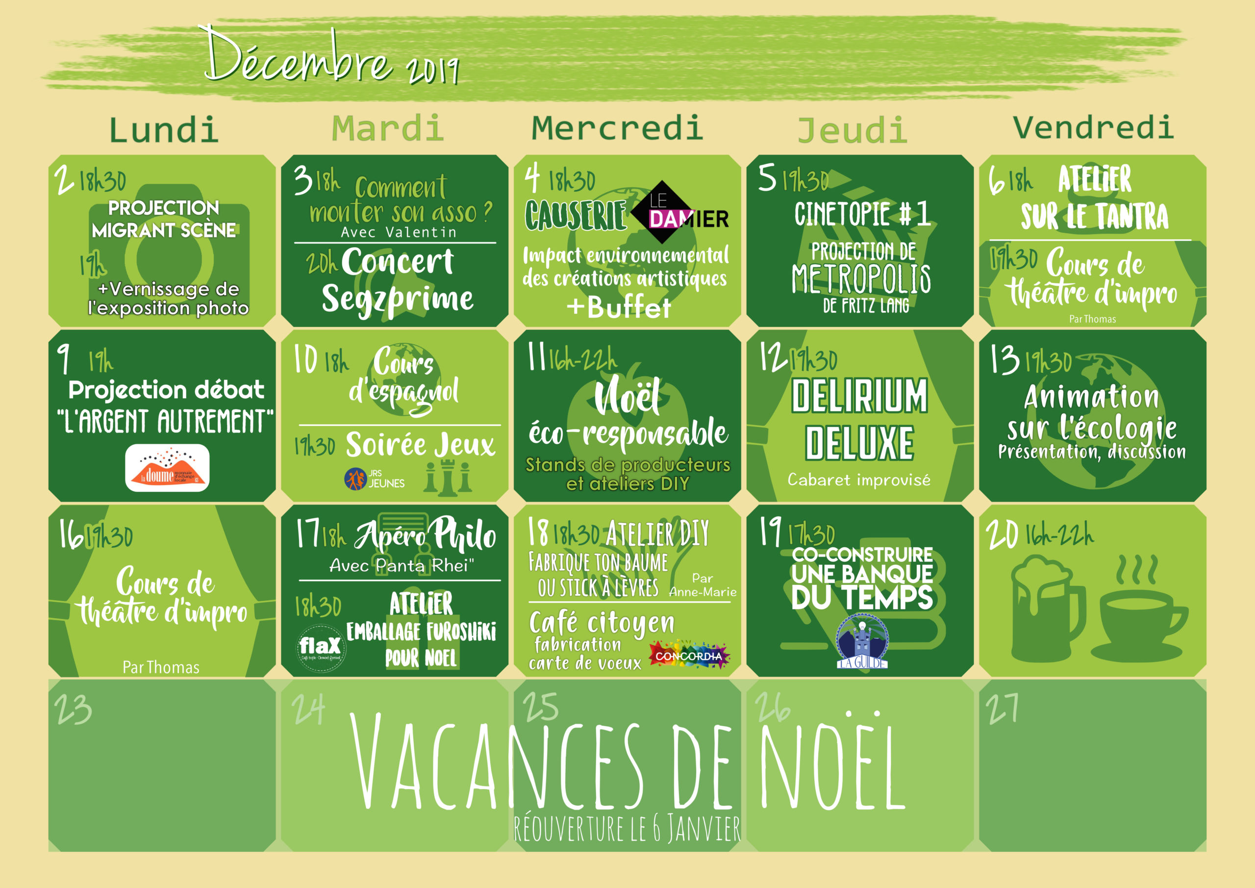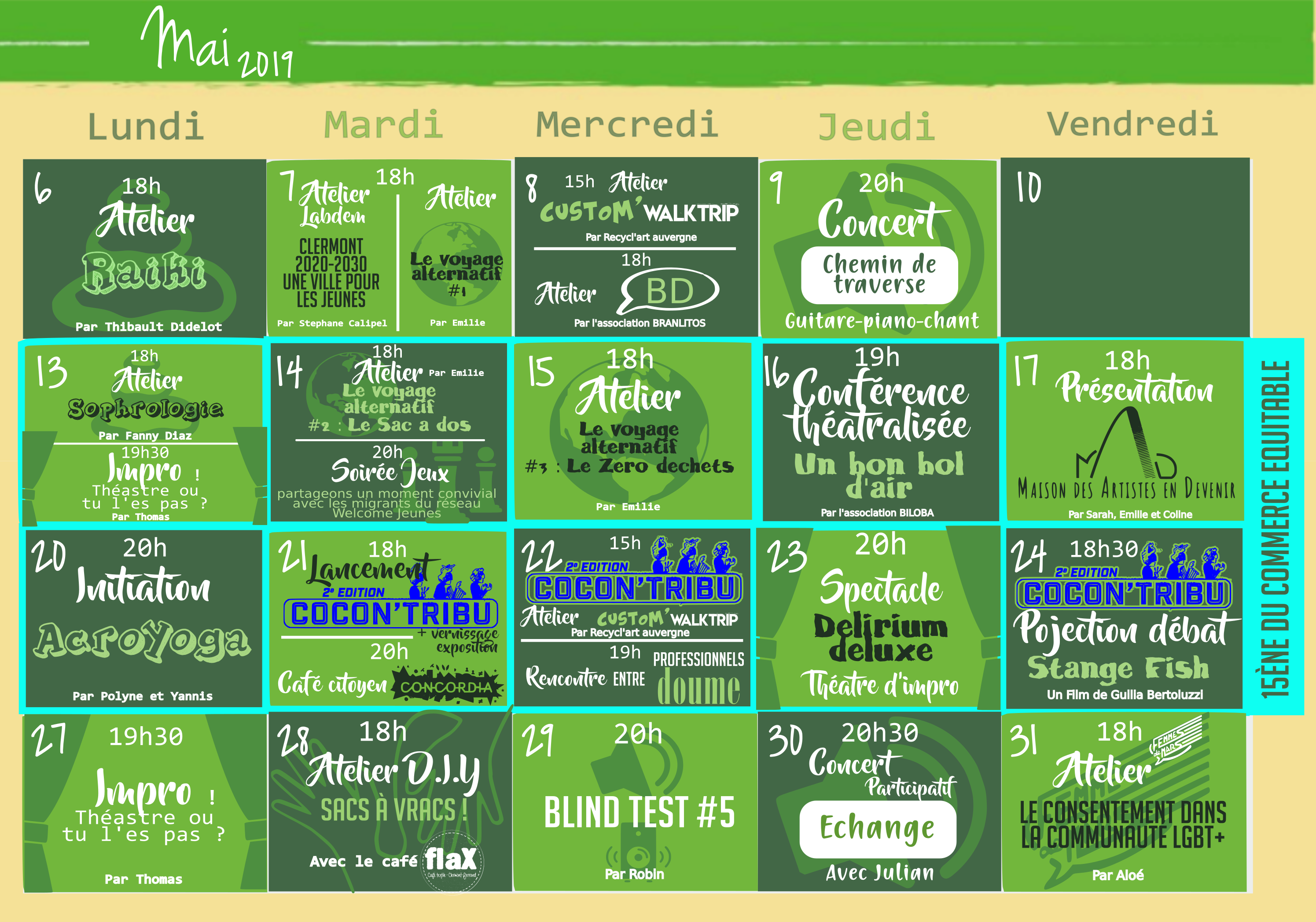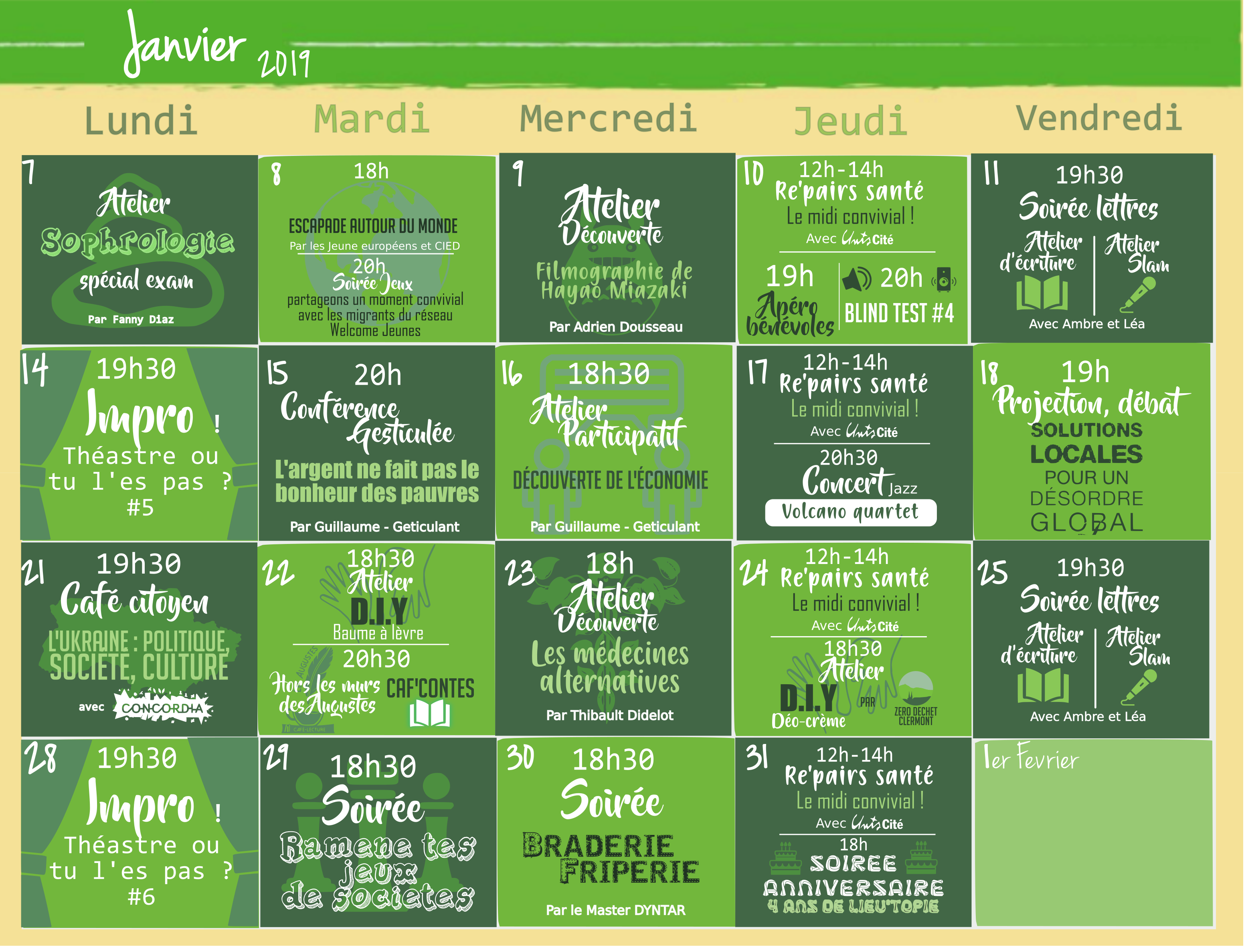 Ses actions, s’inscrivant dans une démarche d’éducation populaire, invitent les étudiant·e·s et clermontois·e·s à expérimenter de nouvelles pratiques et modes de pensée dans la convivialité. Ouvert du lundi au samedi, l’association propose une programmation axée autour des pratiques culturelles, des luttes contre toute forme de discrimination, de la sensibilisation à l’alimentation saine, à l’agriculture bio et locale et à l’écologie, via des rencontres sous forme d’ateliers, conférences-débats, concerts et bien d’autres propositions.