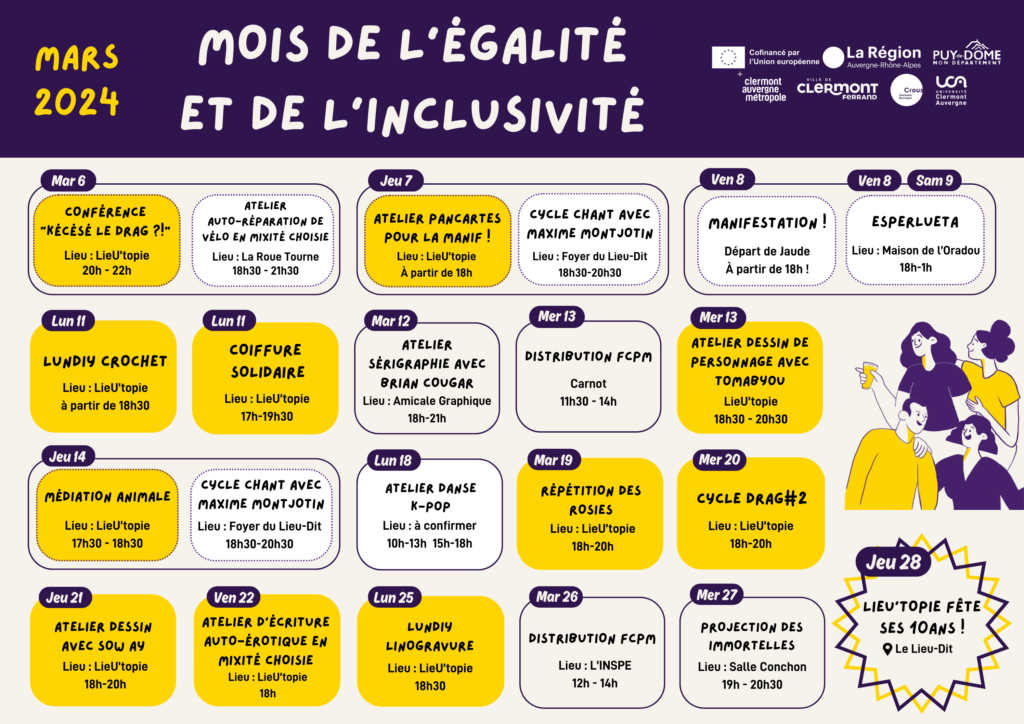 Le Mois des Adelphes Rebelles, de la Solidarité et de l’Égalité, anciennement « Mois de l’Égalité et de l’Inclusivité » est un mois d’évènements spécial organisé par LieU’topie et ses partenaires, en mars, chaque année depuis 2021. Initialement, c’était simplement une semaine organisée autour de la Journée Internationale du Droit des Femmes qui s’est transformé en mois-festival, au vue de son succès !