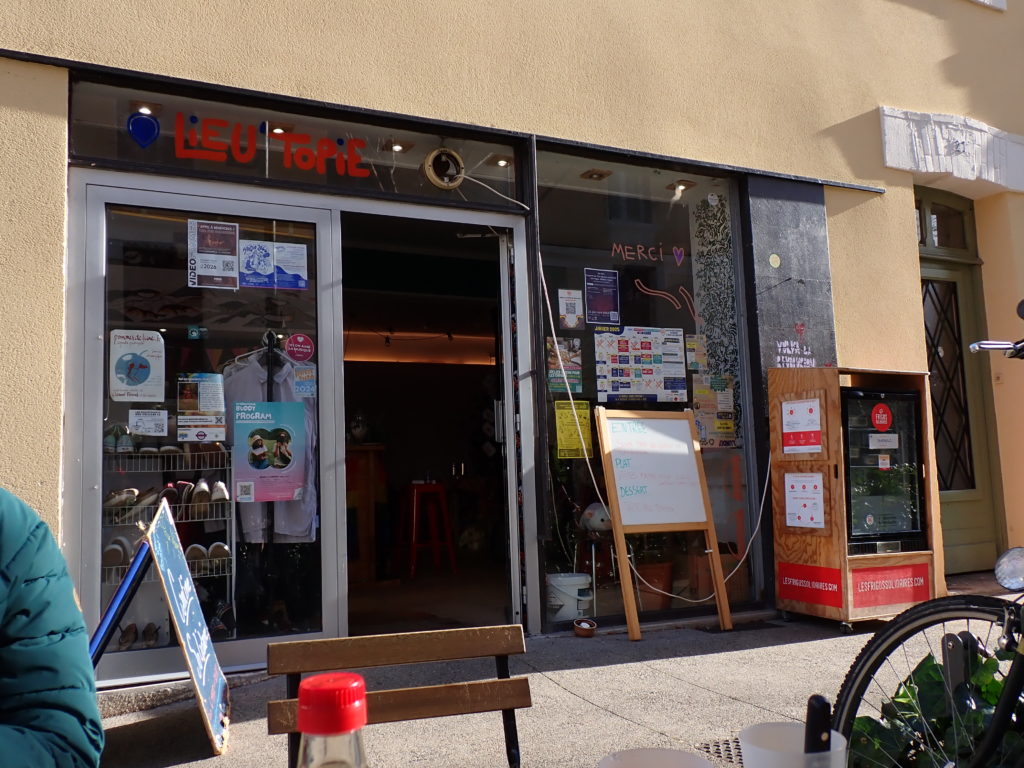 Dès que vous passez la porte, vous trouvez le café-bar de LieU’topie. Ici, vous pouvez vous installer à l’intérieur ou en terrasse et profiter d’un large choix de boissons : thés, tisanes, cafés bio et équitables, jus de fruits et limonade locaux, sirops,… Mais aussi des bière artisanales, bio et locales, brassées à Ceyrat par ISKA ! Un espace convivial pour se retrouver et échanger, en rappelant qu’il n’y a pas obligation de consommer.