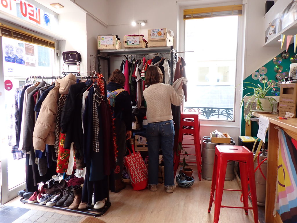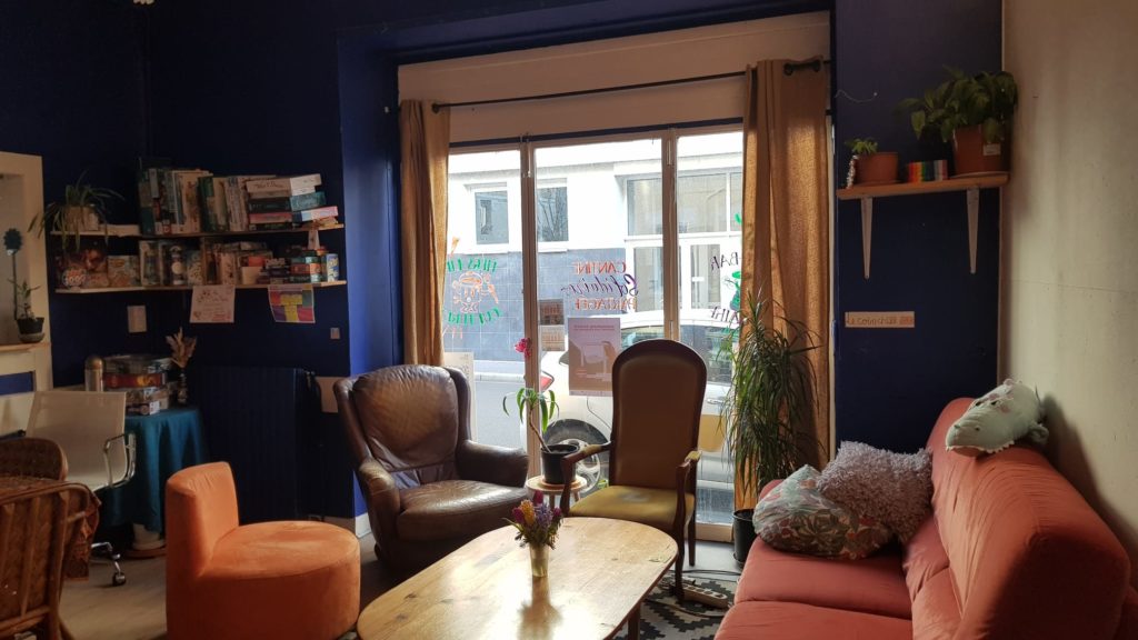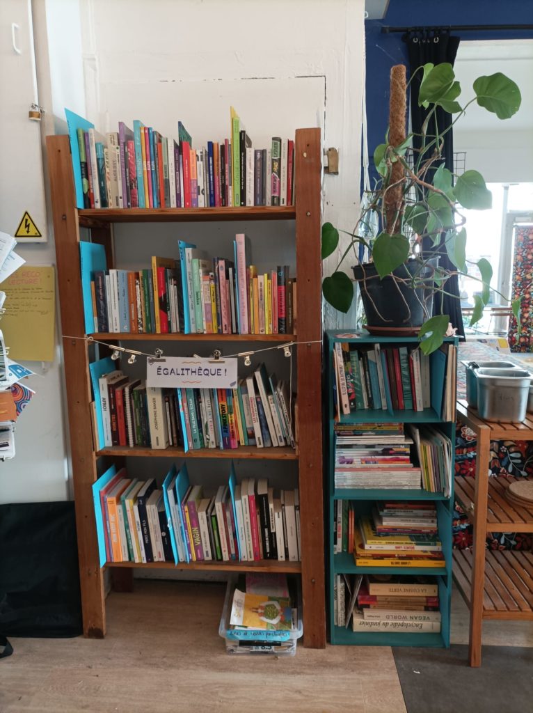Friperie solidaire, une ‘égalithèque’, remplie de livres et de BD’s, des jeux, du matériel de bricolage, un coin chill et même un coin enfant !